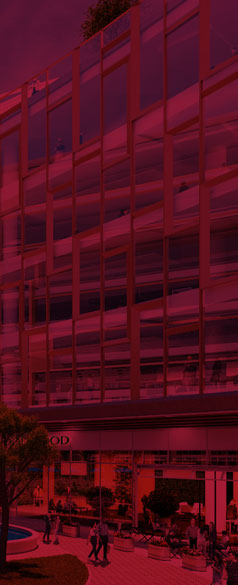 A split 5- and 8-story building housing approximately 230,000 sq. ft. of office space and 32,000 sq. ft. of ground floor retail in a one-level underground garage.