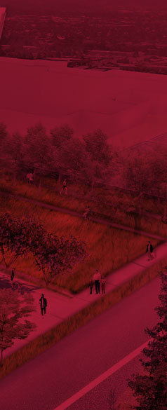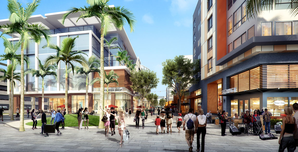 A 17-acre mixed-use development including over 400 residential units of affordable and market-rate apartments, 150,000 square feet of office, 40,000 square feet of retail and restaurants, and over 160 hotel rooms, all connected by an open space system of pedestrian links and multi-use plazas.